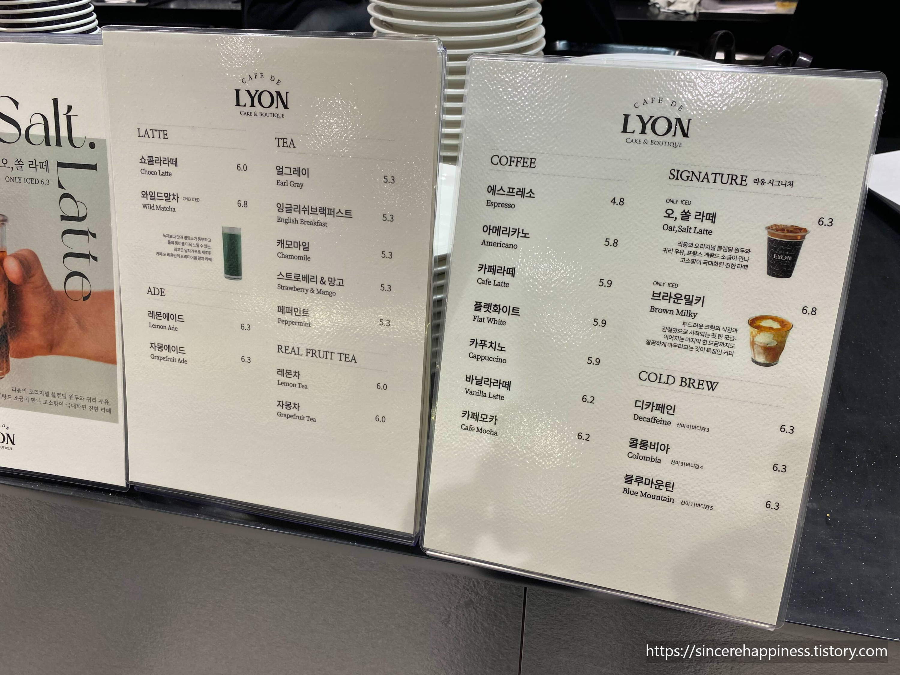 리옹 시그니처 음료 메뉴도 맛있어 보이더라