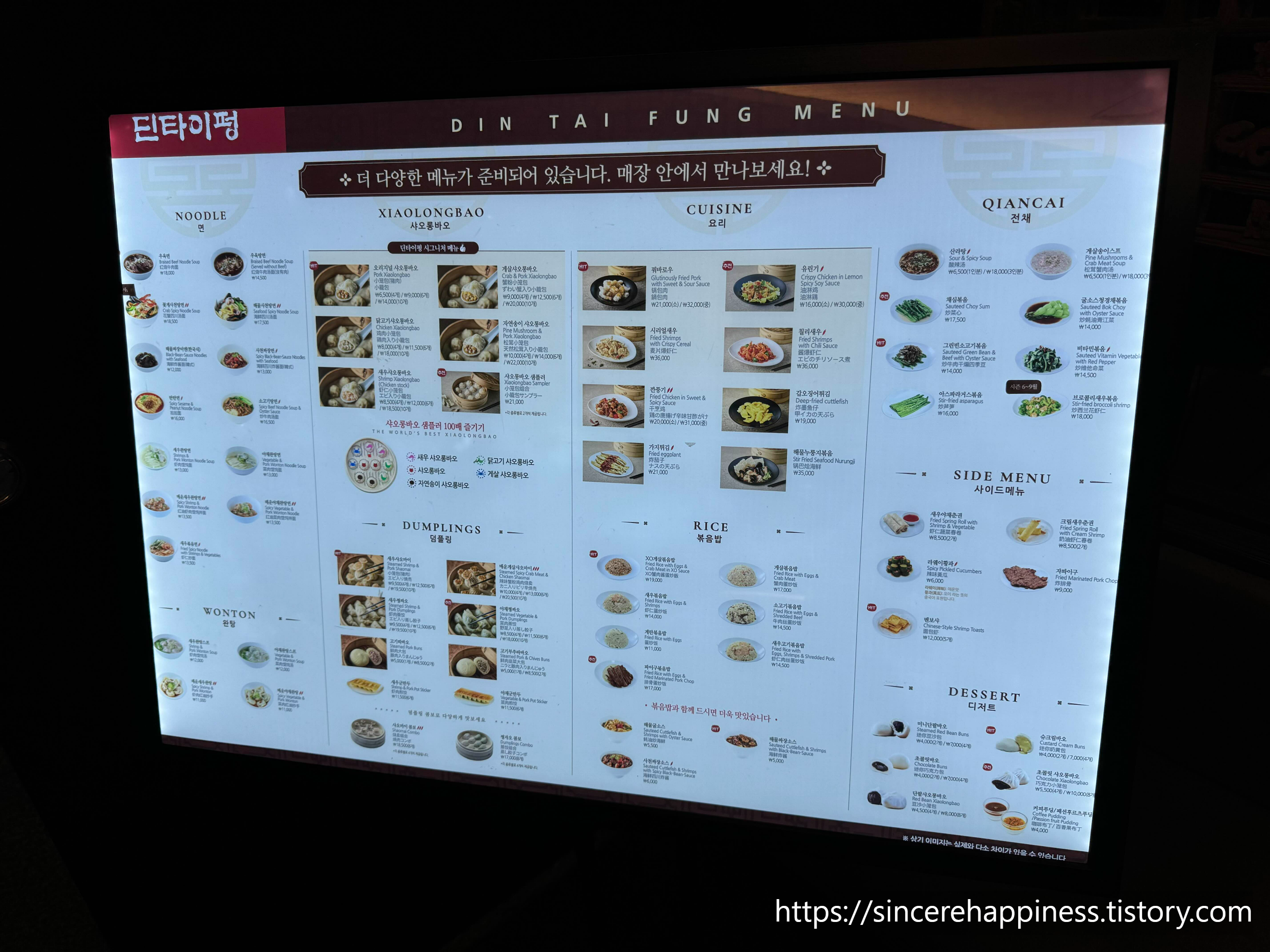 📍딘타이펑 메뉴판